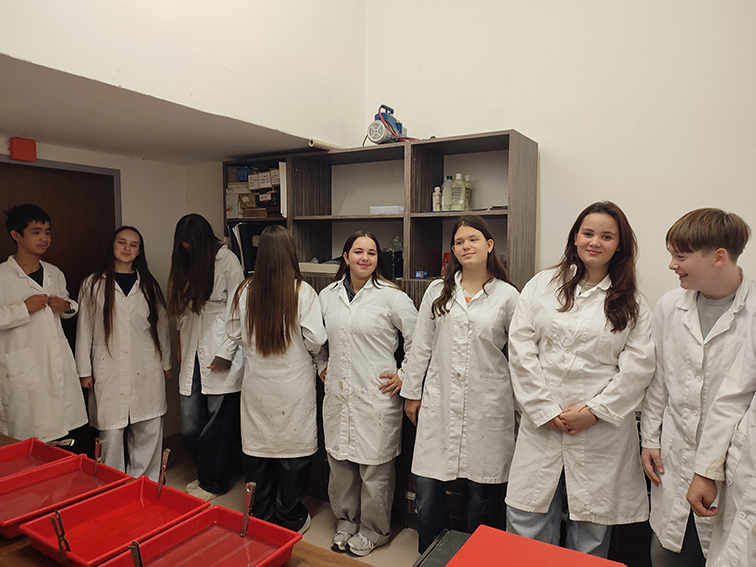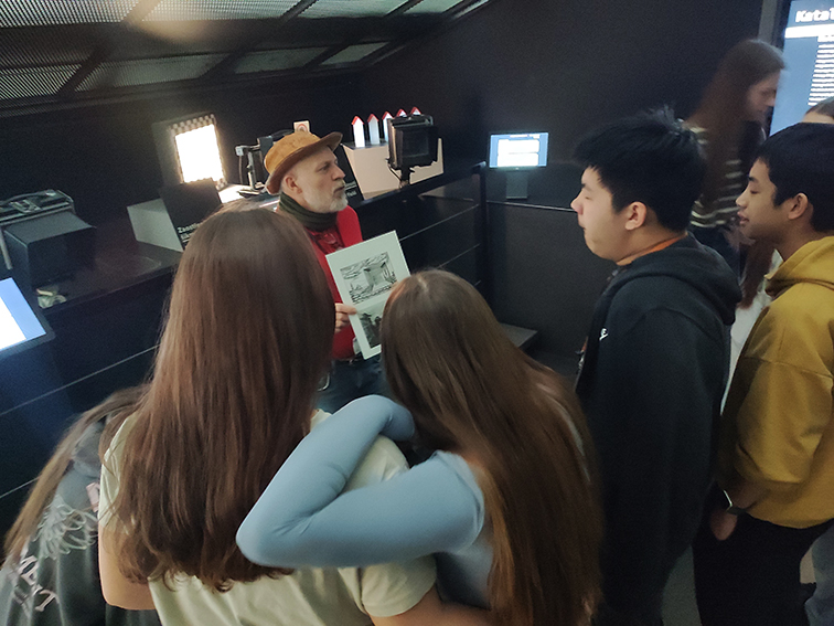 V letošním školním roce je pro žáky 8. ročníků připraven výtvarný workshop Kresba světlem – základní principy fotografie, který jednotlivé třídy absolvují postupně v průběhu školního roku. Třída 8.A vyrazila do Národního technického muzea jako první, a to již v lednu. Žáci si zde vyzkoušeli práci v temné komoře i ve fotografickém ateliéru. Program žákům přiblížil nejen počátky vzniku fotografie, ale také je aktivně zapojil do samotného procesu jejího vzniku – propojil tak umění, fyziku i chemii. Workshop probíhal v prostorách expozic Interkamera a Fotografický ateliér.